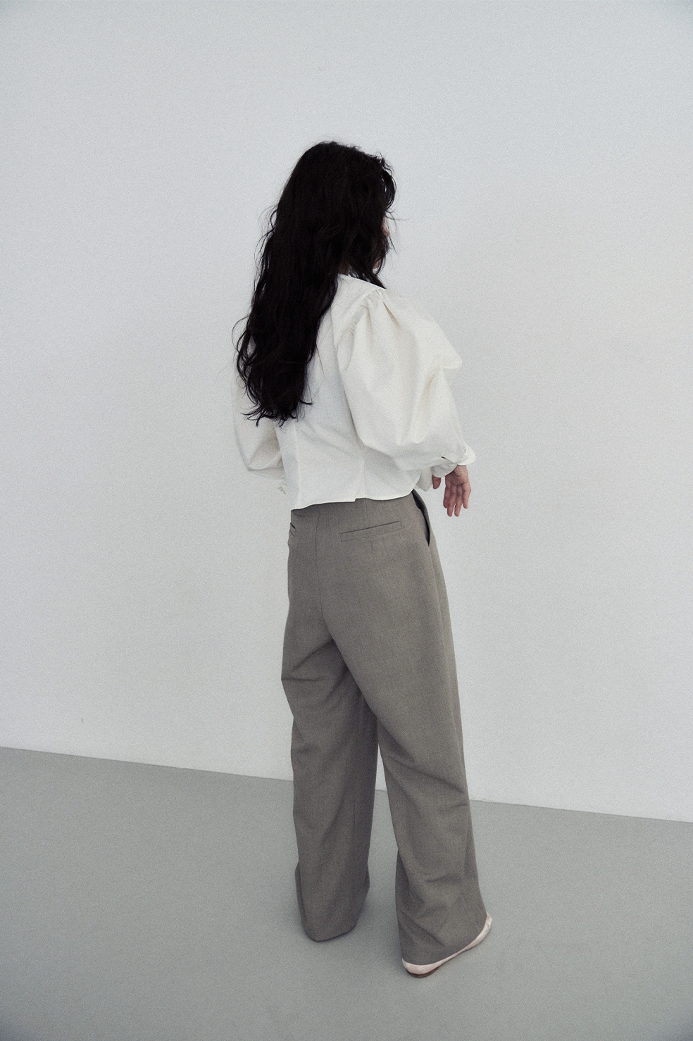 フロントに施したミニレース、袖のボリューム、砂時計のようなくびれシルエットと
