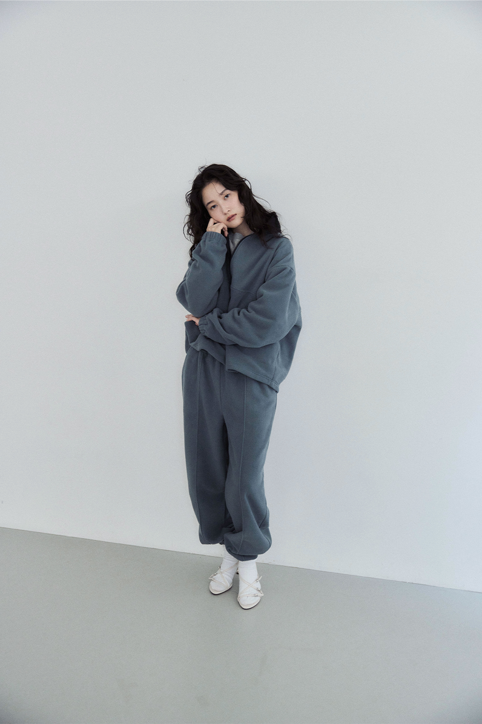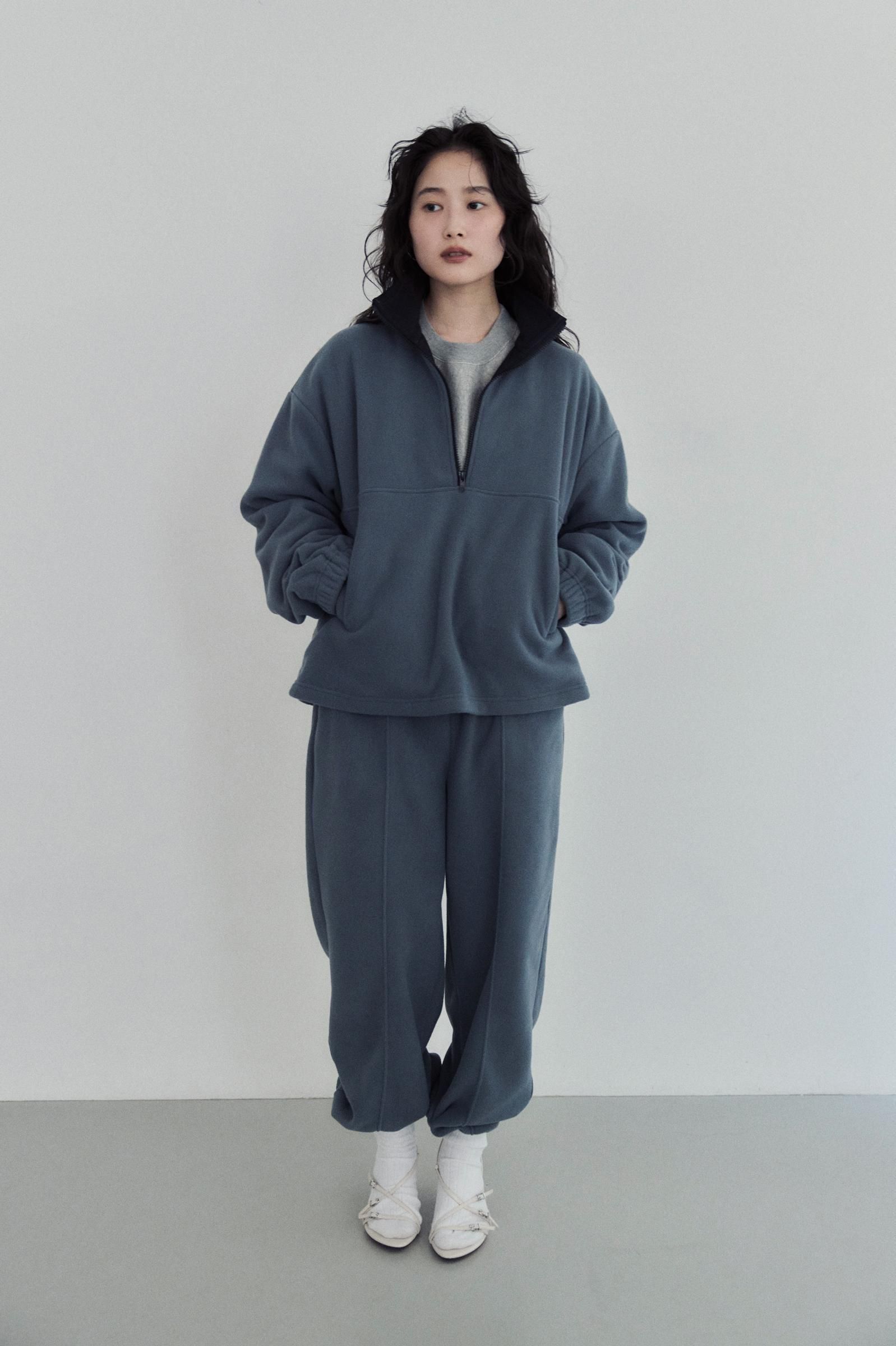 同素材でお作りした、FLEECE ZIP PULLOVERとセットアップで着用もおすすめです。