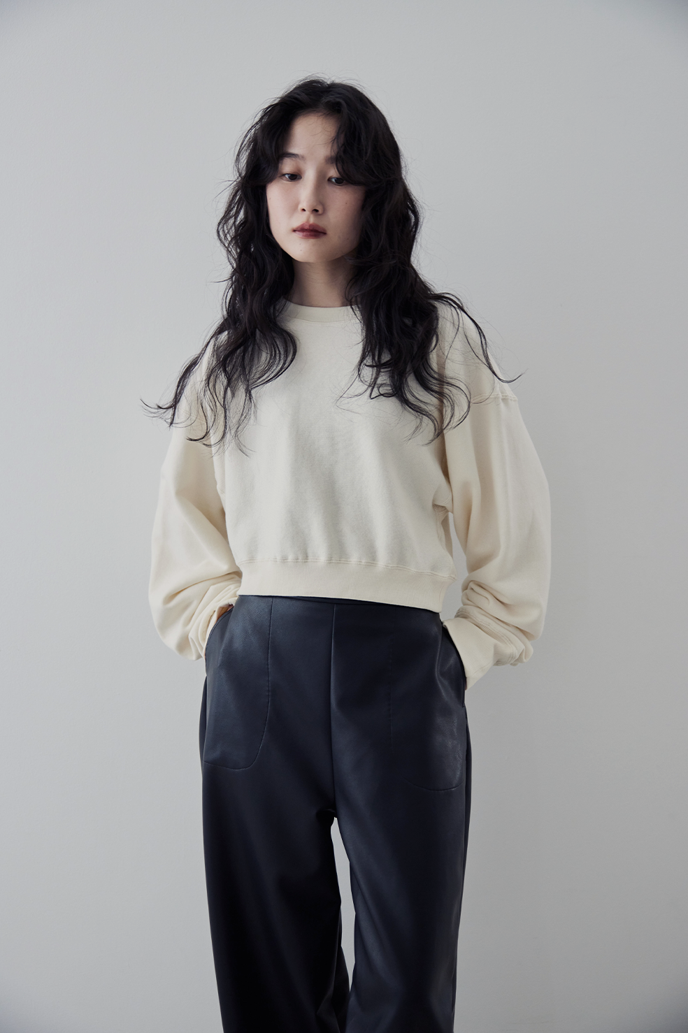 リヨセル/コットンの粗挽き杢を使用した膨らみのあり柔らかな質感が特徴のSHORT LENGTH SWEATSHIRT