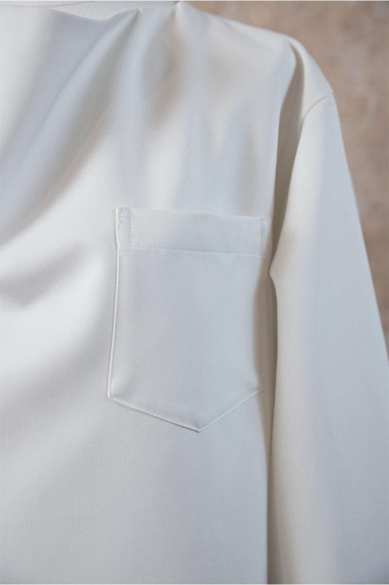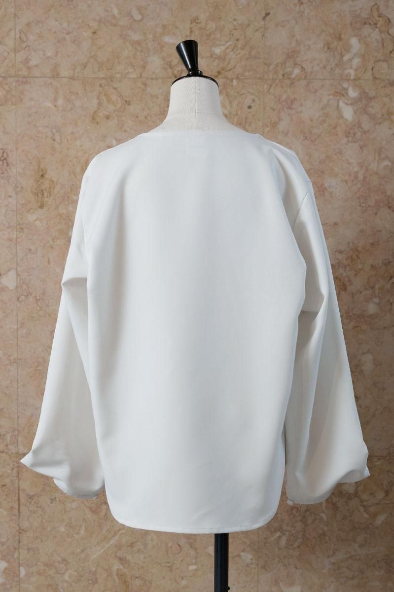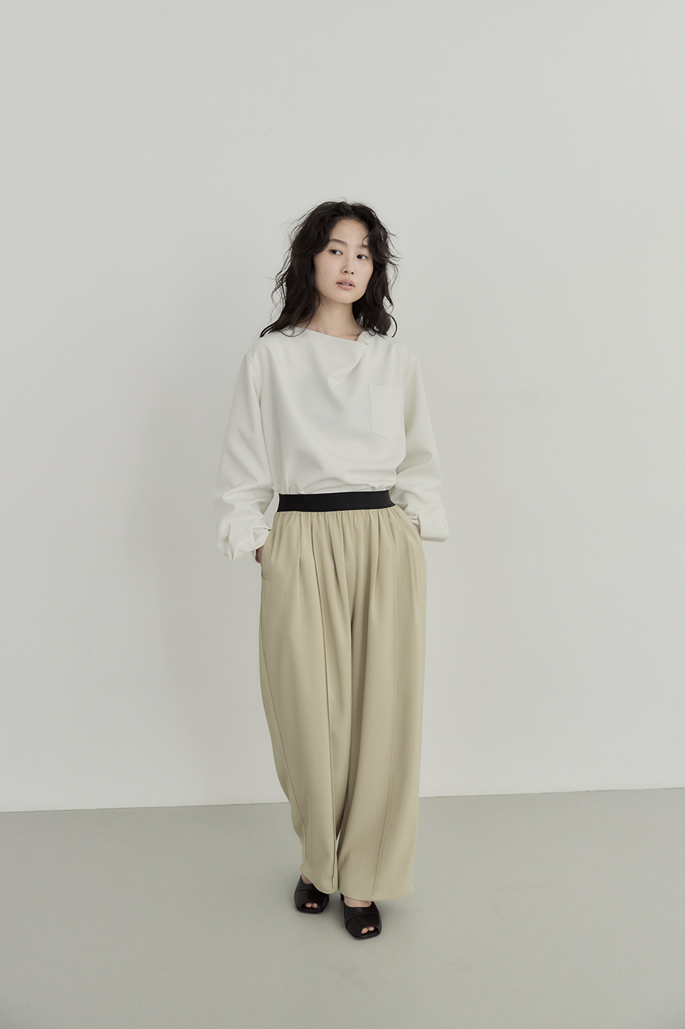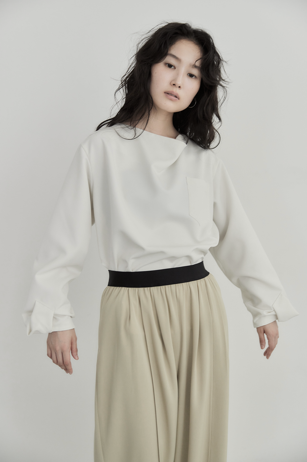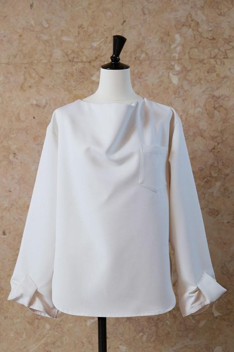 ネックラインのドレープが優雅で上品な印象のDRAPE BLOUSE