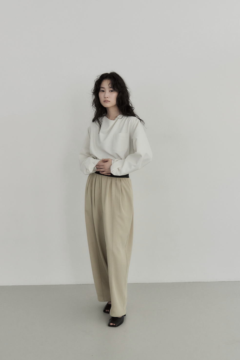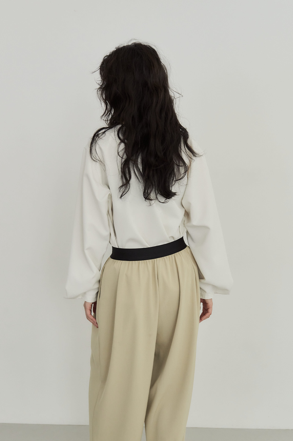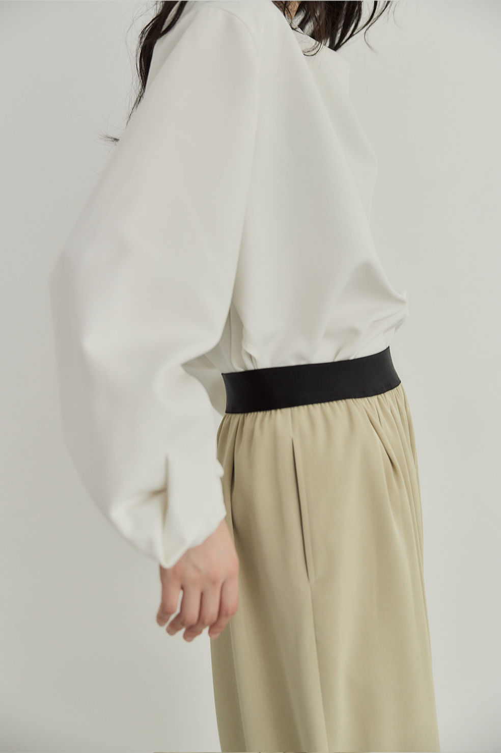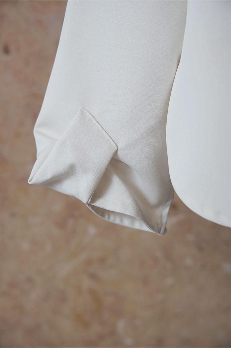 ネックラインのドレープが優雅で上品な印象のDRAPE BLOUSE