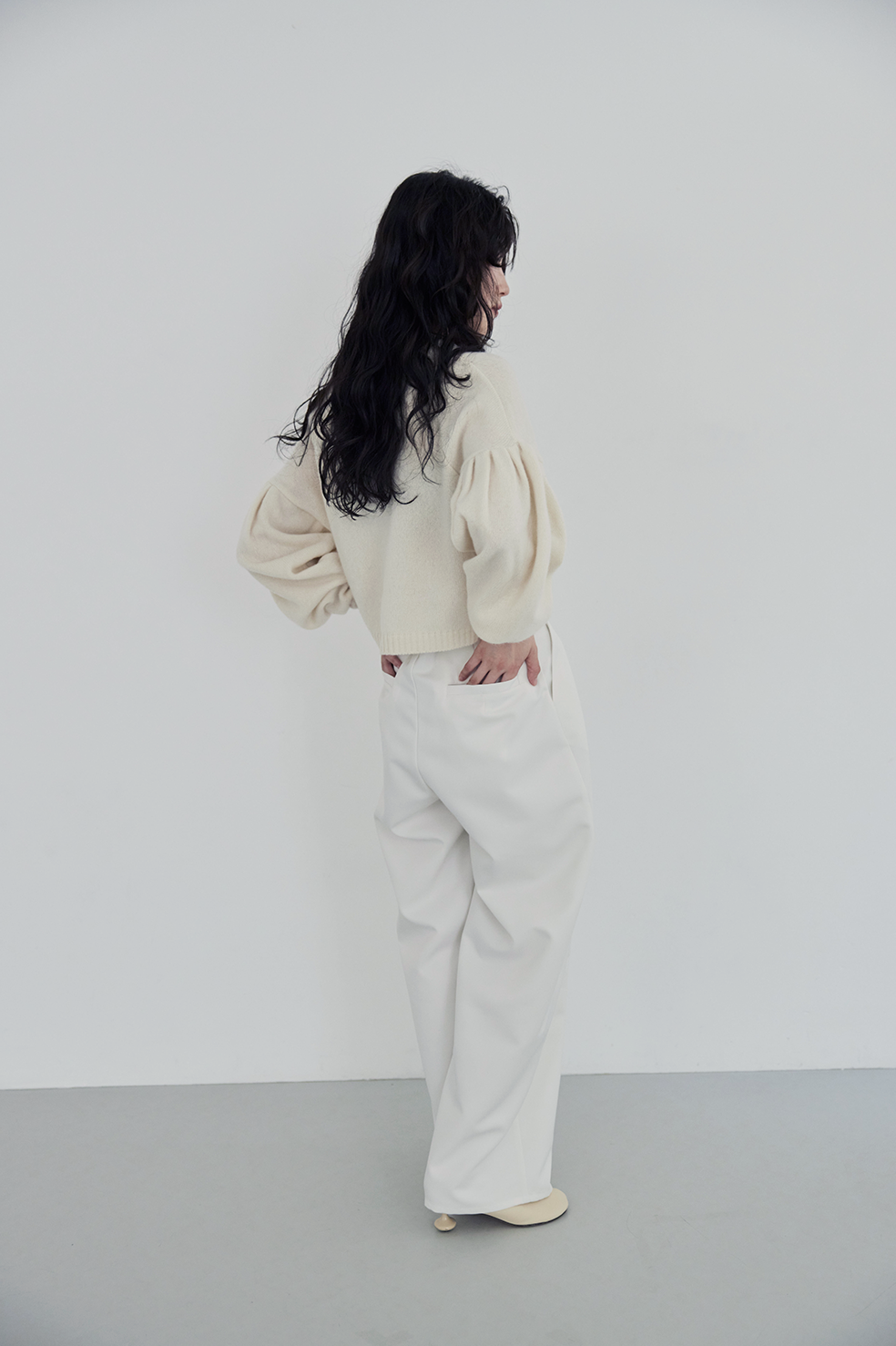 シルエットも美しく、シンプルんスタイリングにも華やぐニットです。